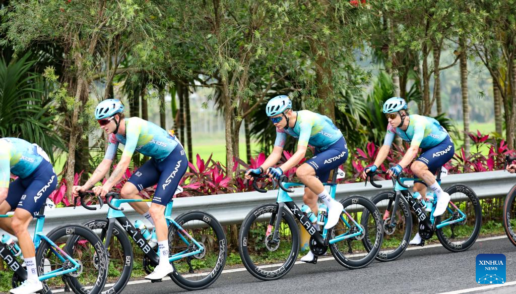 Ciclistas del equipo XDS Astana compiten durante la primera etapa de la 16.ª Vuelta Ciclista a Hainan, en Qionghai, provincia de Hainan, en el sur de China, el 7 de abril de 2025. (Xinhua/Yang Guanyu.)