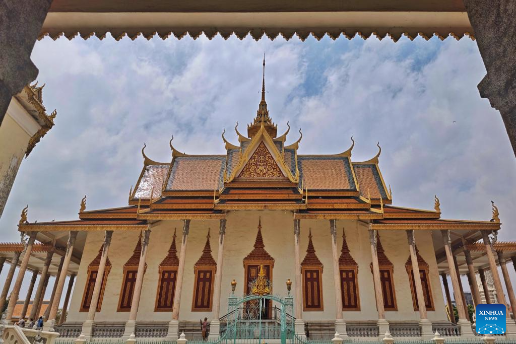 Imagen del 15 de abril de 2025 del Palacio Real, en Phnom Penh, Camboya. Phnom Penh, capital del Reino de Camboya, está situada junto a la confluencia de los ríos Mekong y Tonle Sap. La coexistencia de la arquitectura tradicional y los edificios modernos dota a la ciudad de vida y vitalidad. (Xinhua/Wang Ye)