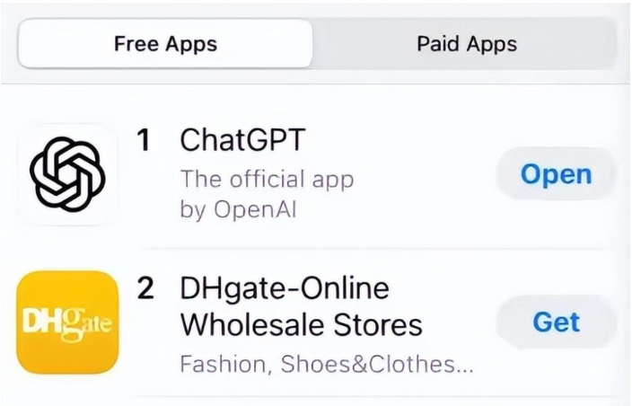 DHgate, una plataforma en línea para el comercio transfronterizo con sede en Beijing, se convirtió el miércoles en la segunda aplicación más popular de la App Store de Apple en EE. UU., seguida de ChatGPT, según informó el miércoles el Wall Street Journal (WSJ).