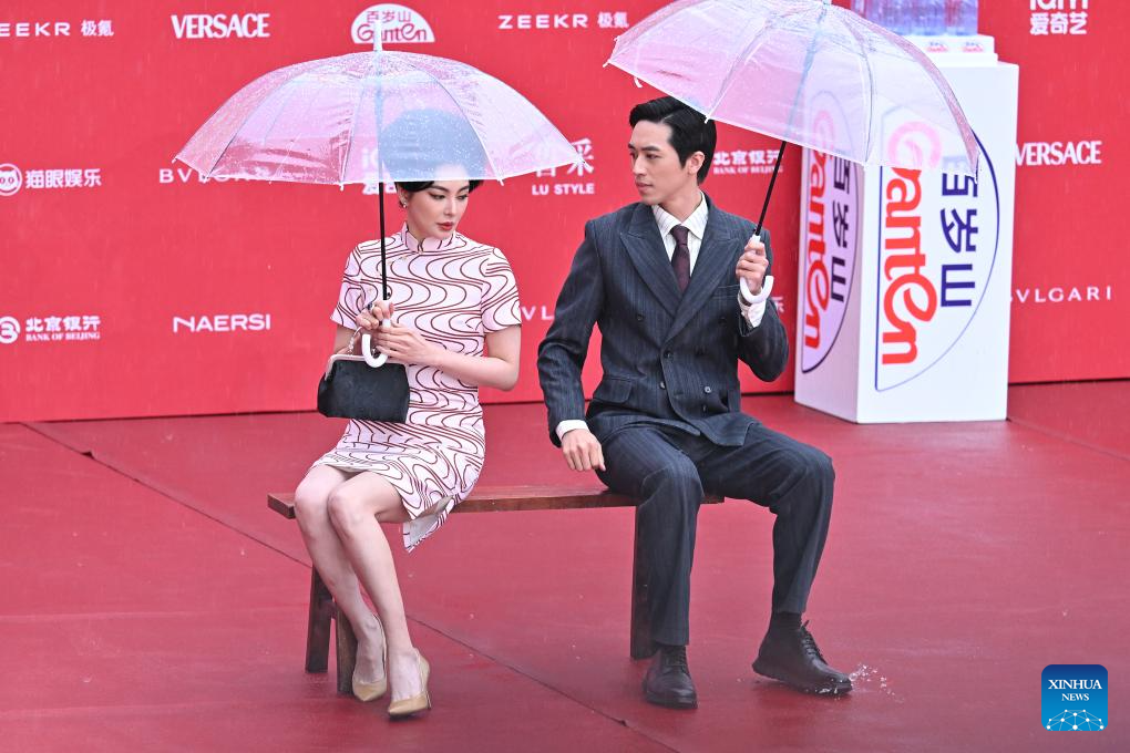 La actriz Zhang Yuqi y el actor Xu Weizhou son fotografiados en la alfombra roja del 15.º Festival Internacional de Cine de Beijing (BJIFF), el 18 de abril de 2025. El 15.º BJIFF comenzó el viernes en la capital china. (Xinhua/Li Xin.)
