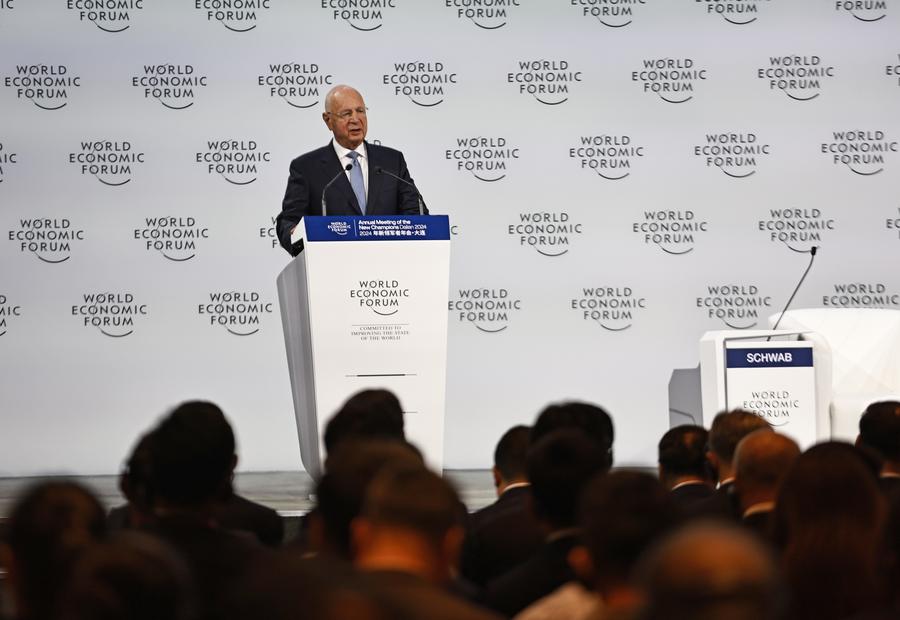 El presidente ejecutivo del Foro Económico Mundial, Klaus Schwab, habla en el Foro de Davos de Verano 2024, en la ciudad de Dalian (noreste de China), el 25 de junio de 2024. (Xinhua/Yang Qing)