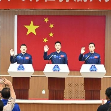 Los tres astronautas para la misión de vuelo espacial Shenzhou-20 de China, Chen Dong, Chen Zhongrui y Wang Jie, se reunieron hoy miércoles con la prensa.