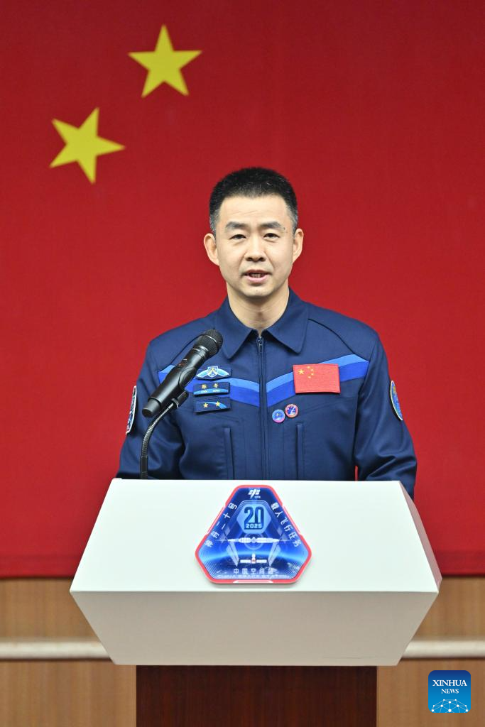 Los tres astronautas para la misión de vuelo espacial Shenzhou-20 de China, Chen Dong, Chen Zhongrui y Wang Jie, se reunieron hoy miércoles con la prensa.