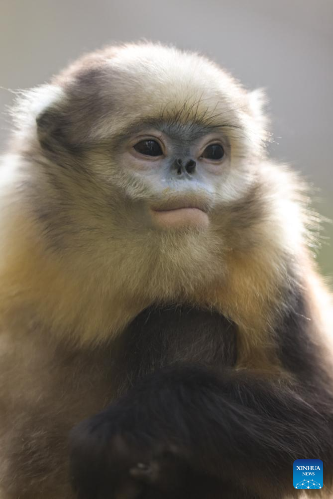 Un mono de nariz chata de Guizhou es visto en un centro de investigación de monos de nariz chata de Guizhou en la Reserva Natural Nacional del Monte Fanjing, en la provincia suroccidental china de Guizhou, el 15 de abril de 2025. (Xinhua/Ou Dongqu.)