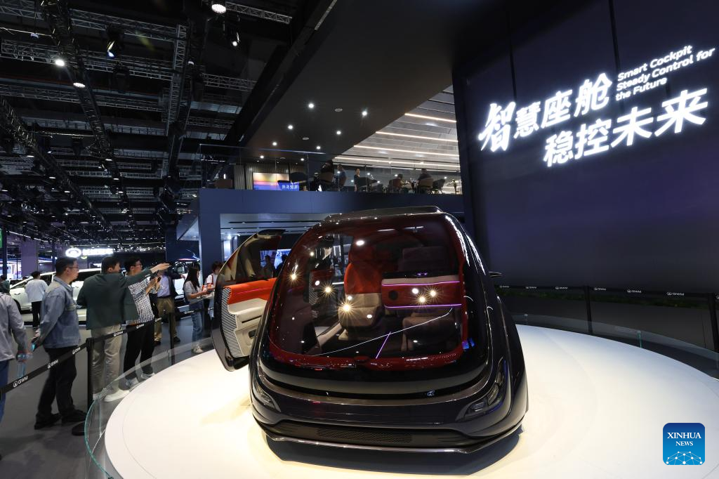 Personas observan cabinas inteligentes en el estand de Great Wall Motor en la XXI Exposición Internacional de la Industria Automotriz de Shanghai, en Shanghai, en el este de China, el 25 de abril de 2025. Con el tema "Abrazando la Innovación, Empoderando el Futuro", la exposición, también conocida como Auto Shanghai 2025, comenzó aquí el miércoles, atrayendo a casi 1.000 empresas destacadas de 26 países y regiones. Además del debut de nuevos modelos, los fabricantes de automóviles también aprovecharon el escenario con sus últimas tecnologías para vehículos inteligentes, como la conducción inteligente, sistemas de inteligencia artificial (IA) y cabinas inteligentes. (Xinhua/Fang Zhe)