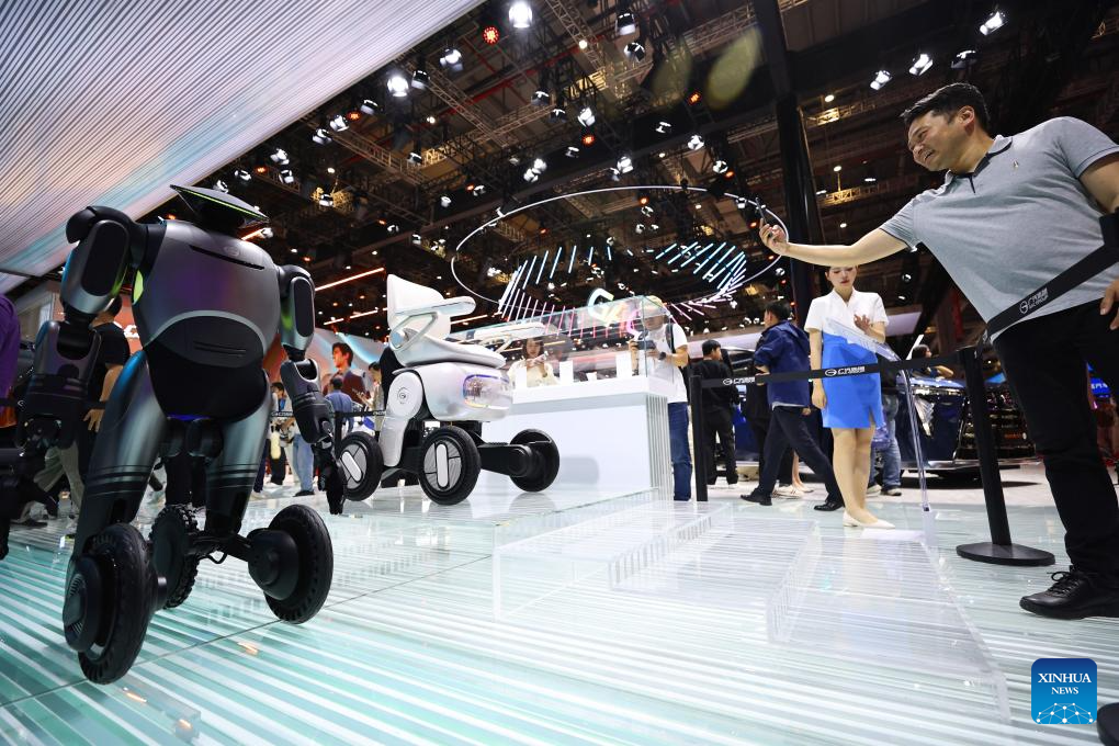Un visitante toma fotografías de robots exhibidos en el estand de GAC Group en la XXI Exposición Internacional de la Industria Automotriz de Shanghai, en Shanghai, en el este de China, el 25 de abril de 2025. Con el tema "Abrazando la Innovación, Empoderando el Futuro", la exposición, también conocida como Auto Shanghai 2025, comenzó aquí el miércoles, atrayendo a casi 1.000 empresas destacadas de 26 países y regiones. Además del debut de nuevos modelos, los fabricantes de automóviles también aprovecharon el escenario con sus últimas tecnologías para vehículos inteligentes, como la conducción inteligente, sistemas de inteligencia artificial (IA) y cabinas inteligentes. (Xinhua/Fang Zhe)