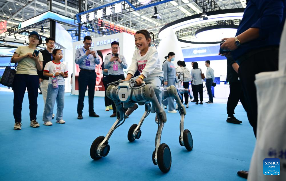 Una niña monta un robot en la 3ª Feria de Transformación de Logros de Innovación en Ciencia y Tecnología de China (Anhui), en Hefei, capital de la provincia de Anhui, en el este de China, el 26 de abril de 2025. Comenzando el sábado y cubriendo una superficie total de exposición de 20.000 metros cuadrados, la feria ha atraído a más de 2.000 empresas y cerca de 200 universidades. Se han establecido seis zonas de exposición para mostrar los últimos logros científicos y tecnológicos de todo el mundo. Diez eventos de emparejamiento de cooperación, incluyendo presentaciones itinerantes y actividades comerciales, también se celebrarán para promover la comercialización de proyectos científicos y tecnológicos. (Xinhua/Zhou Mu)