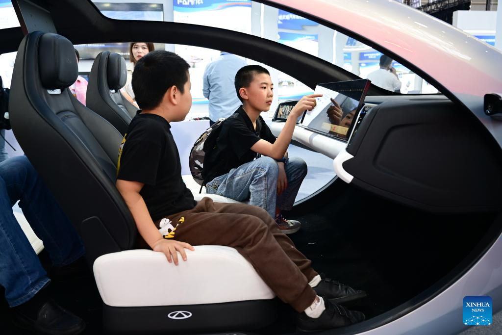 Niños experimentan una cabina inteligente en la 3ª Feria de Transformación de Logros de Innovación en Ciencia y Tecnología de China (Anhui), en Hefei, capital de la provincia de Anhui, en el este de China, el 26 de abril de 2025. Comenzando el sábado y cubriendo una superficie total de exposición de 20.000 metros cuadrados, la feria ha atraído a más de 2.000 empresas y cerca de 200 universidades. Se han establecido seis zonas de exposición para mostrar los últimos logros científicos y tecnológicos de todo el mundo. Diez eventos de emparejamiento de cooperación, incluyendo presentaciones itinerantes y actividades comerciales, también se celebrarán para promover la comercialización de proyectos científicos y tecnológicos. (Xinhua/Zhou Mu)