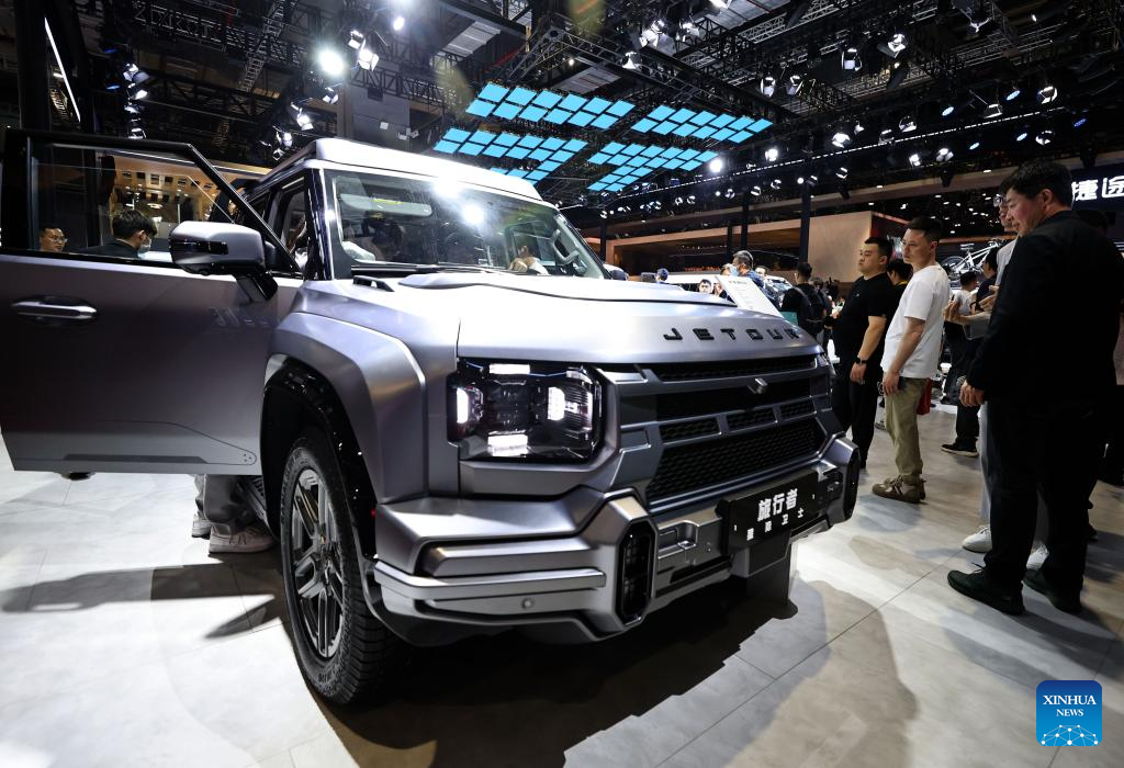 Visitantes observan un vehículo de la marca de automóviles china Jetour en la XXI Exposición Internacional de la Industria Automotriz de Shanghai, en Shanghai, en el este de China, el 26 de abril de 2025. La exposición, también conocida como Auto Shanghai 2025, no solo anticipa las tendencias tecnológicas del mercado automotriz global, sino que también demuestra la fortaleza y la confianza de los fabricantes de automóviles en ascenso de China frente a los gigantes globales consolidados. (Xinhua/Fang Zhe)