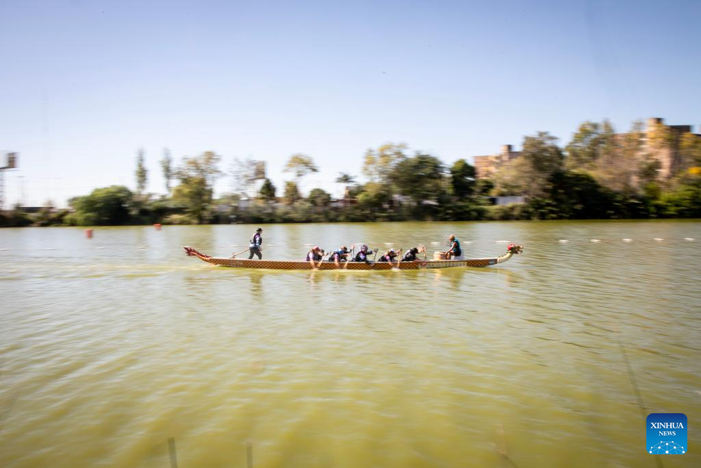 Imagen del 26 de abril de 2025 de personas participando en una competencia de Botes del Dragón, en Avellaneda, Argentina. (Xinhua/Martín Zabala)