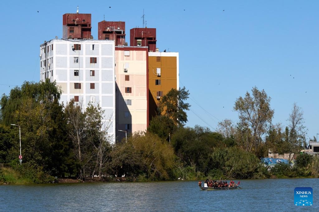 Imagen del 26 de abril de 2025 de personas participando en una competencia de Botes del Dragón, en Avellaneda, Argentina. (Xinhua/Meng Dingbo)