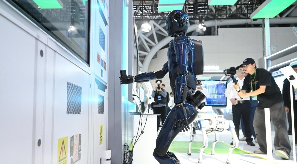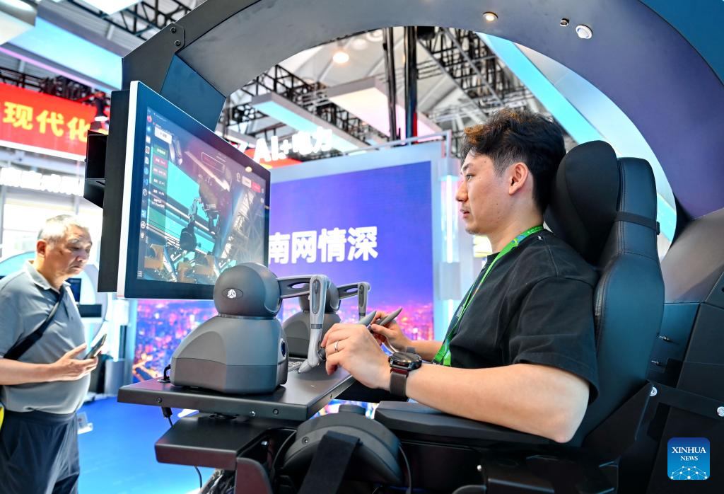 Un empleado demuestra la operación de un robot en la zona de experiencias de la VIII Cumbre China Digital, en Fuzhou, en la provincia de Fujian, en el sureste de China, el 28 de abril de 2025. Con la asistencia de más de 300 instituciones profesionales, la VIII Cumbre China Digital abrió su zona de experiencias a los visitantes profesionales el lunes, mostrando los logros de la transformación digital del país en medio de un sólido crecimiento en el sector digital. (Xinhua/Lin Shanchuan)