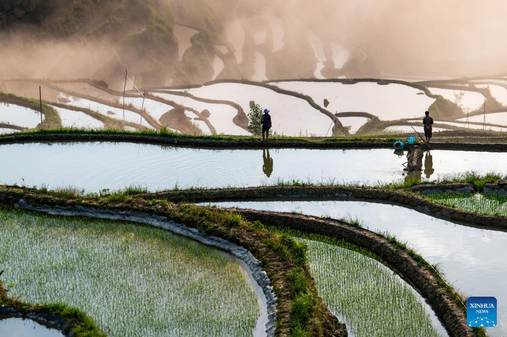 Vista de los campos aterrazados en Congjiang, Guizhou