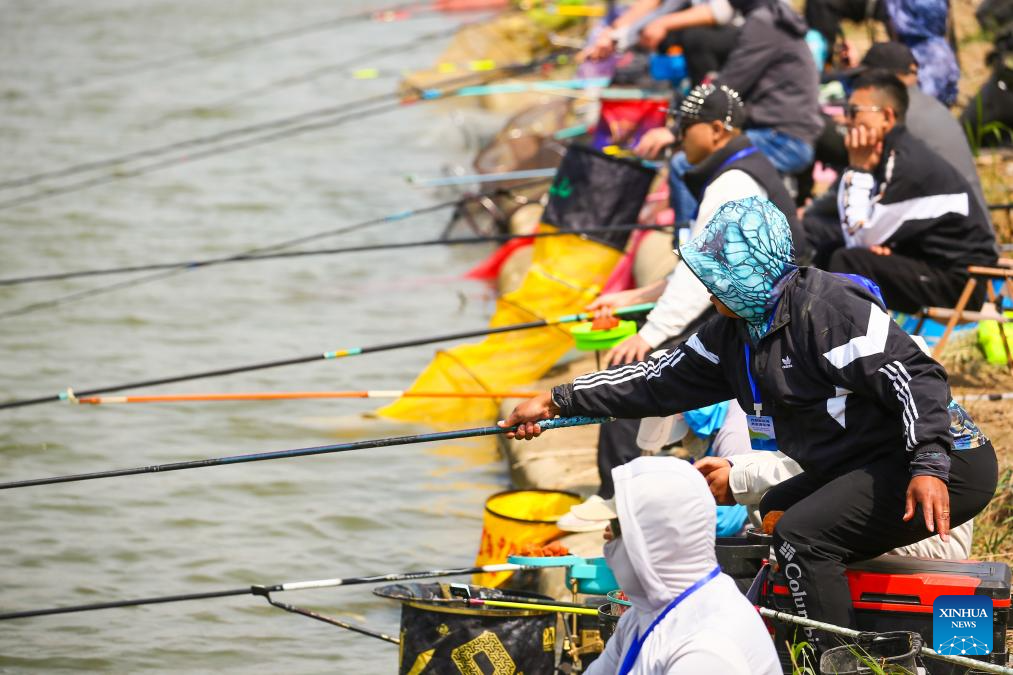 Entusiastas durante un concurso de pesca en la ciudad de Hai'an, provincia oriental china de Jiangsu, el 3 de mayo de 2025. (Foto de Gu Binbin/Xinhua.)
