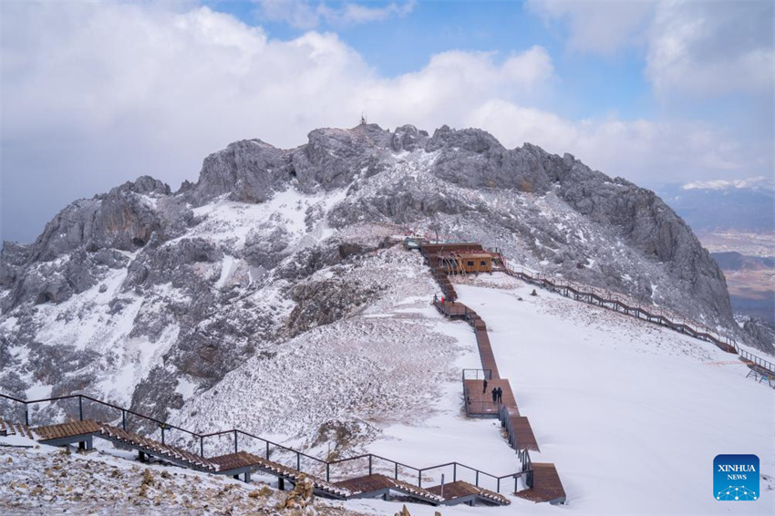 Turistas visitan la montaña nevada Shika en Shangri-la, en la prefectura autónoma tibetana de Deqen, provincia suroccidental china de Yunnan, el 24 de febrero de 2025. (Xinhua/Peng Yikai.)