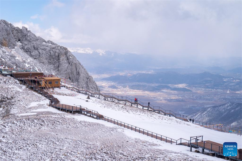 Turistas visitan la montaña nevada Shika en Shangri-La, en la prefectura autónoma tibetana de Deqen, provincia suroccidental china de Yunnan, el 24 de febrero de 2025. (Xinhua/Hu Chao.)