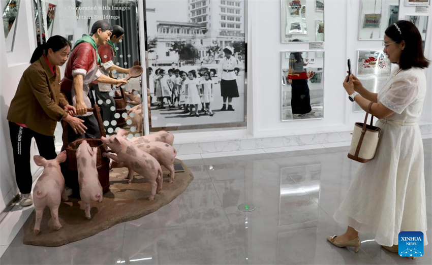 Una visitante posa para fotos en un museo en Guang'an, provincia suroccidental china de Sichuan, el 5 de mayo de 2025. (Foto de Liao Xiaobing/Xinhua.)