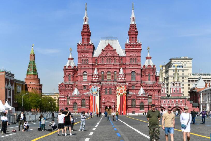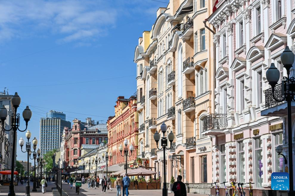 Imagen del 25 de abril de 2025 de personas vistas en la antigua calle Arbat, en Moscú, Rusia. (Xinhua/Cao Yang)