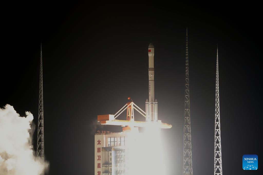 Una versión modificada del cohete Gran Marcha-6 transportando el grupo de satélites Yaogan-40 02 despega desde el Centro de Lanzamiento de Satélites Taiyuan, en la provincia de Shanxi, en el norte de China, el 11 de mayo de 2025. China envió el domingo al espacio un grupo de satélites de teledetección desde el Centro de Lanzamiento de Satélites Taiyuan en la provincia septentrional china de Shanxi. Lanzado a las 21:27 (hora de Beijing) a bordo de una versión modificada del cohete Gran Marcha-6, entró exitosamente en la órbita planeada, dijo el centro de lanzamiento. Estos satélites serán usados para llevar a cabo detección de entornos electromagnéticos y ensayos técnicos relacionados. (Xinhua/Li Chenhao)