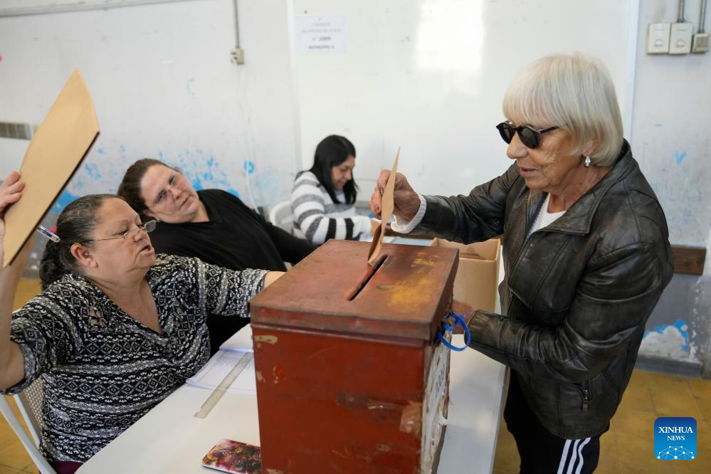 Una mujer emite su voto en un circuito de votación durante las elecciones departamentales y municipales, en Montevideo, capital de Uruguay, el 11 de mayo de 2025. Las elecciones departamentales en Uruguay transcurren el domingo con normalidad para elegir a los 19 intendentes de los departamentos en los que se divide el país sudamericano y que gobernarán para el período 2025-2030, divulgó la Corte Electoral. (Xinhua/Nicolás Celaya)