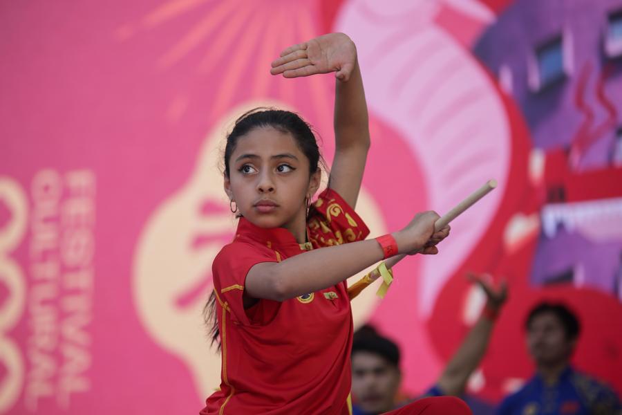 Una niña actúa durante la tercera edición del Festival Cultural del Año Nuevo Chino en el Centro Nacional de las Artes (CENART) en la Ciudad de México, capital de México, el 3 de febrero de 2024. (Foto de Francisco Canedo/Xinhua.)