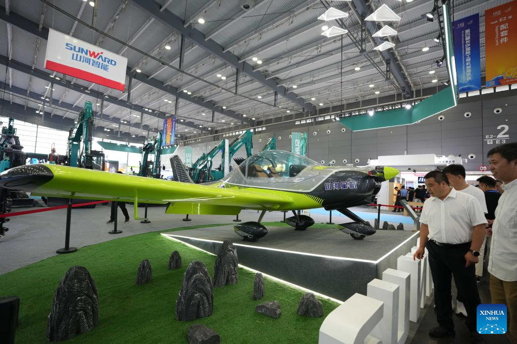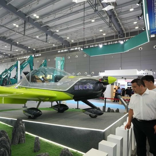 Visitantes observan una aeronave deportiva ligera durante la 4ª Exposición Internacional de Equipos de Construcción de Changsha, en Changsha, en la provincia de Hunan, centro de China, el 15 de mayo de 2025. El evento se lleva a cabo aquí del 15 al 18 de mayo, presentando maquinaria de nueva generación para la construcción, servicios de emergencia, minería, agricultura y transporte, con una superficie de exposición de 300.000 metros cuadrados. (Xinhua/Xue Yuge)