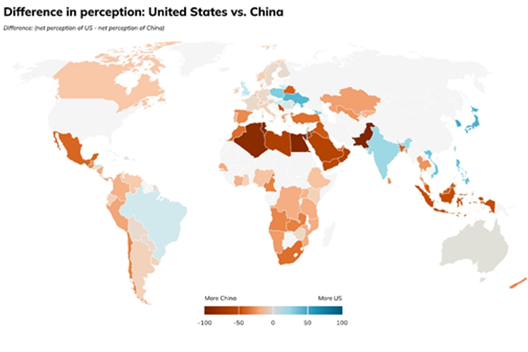 Según la encuesta, 76 países de los 96 encuestados tenían una opinión más positiva de China, lo que equivale al 79 %. Beijing fue percibida más positivamente en todos los continentes, gozando de los mayores niveles de apoyo en la región de Oriente Medio y Norte de África (MENA) y en el África subsahariana, informó Newsweek.