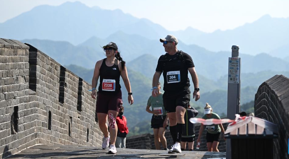 Participantes compiten durante el Maratón de la Gran Muralla, en Tianjin, en el norte de China, el 17 de mayo de 2025. (Xinhua/Li Ran)