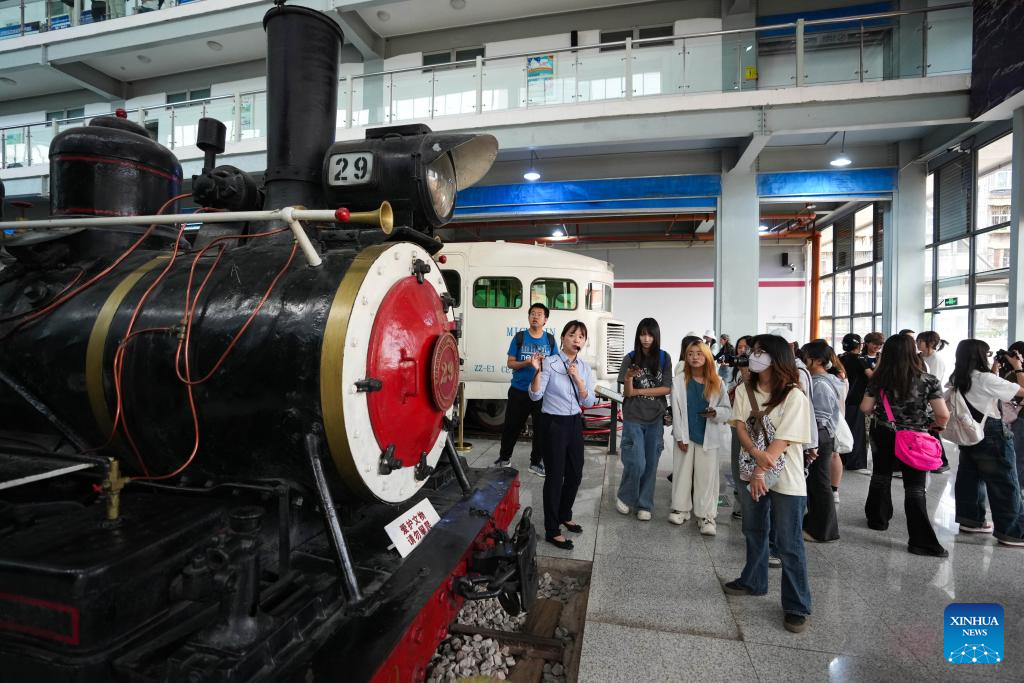 Imagen del 16 de mayo de 2025 de personas visitando el Museo del Ferrocarril de Yunnan, en Kunming, en la provincia de Yunnan, en el suroeste de China. Ubicado en la Estación del Ferrocarril Norte de Kunming, el Museo del Ferrocarril de Yunnan toma la historia centenaria del desarrollo del ferrocarril de Yunnan como la historia principal para narrar la vertiginosa evolución de los estándares de ancho de vía, desde el ancho de vía métrico hasta el ancho de vía en pulgadas y el ancho de vía estándar, así como las tecnologías ferroviarias desde las locomotoras de vapor hasta los ferrocarriles de alta velocidad. (Xinhua/Chen Xinbo)