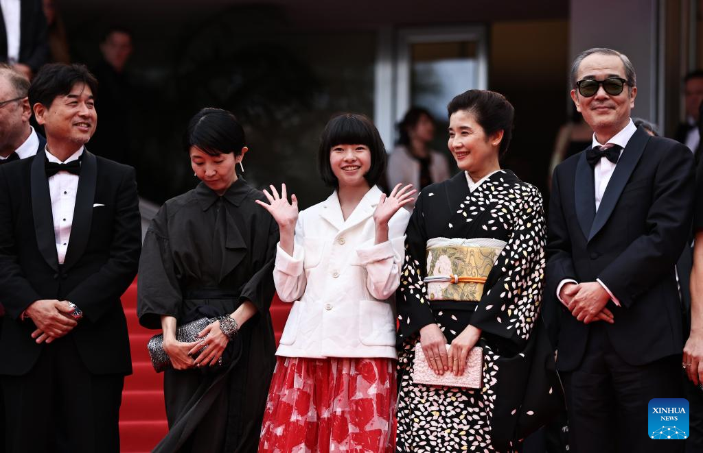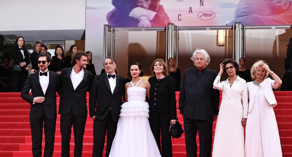 Miembros del reparto de la película Renoir son fotografiados tras el estreno de la película durante la 78 edición del Festival de Cine de Cannes, en el sur de Francia, el 17 de mayo de 2025. (Xinhua/Gao Jing.)