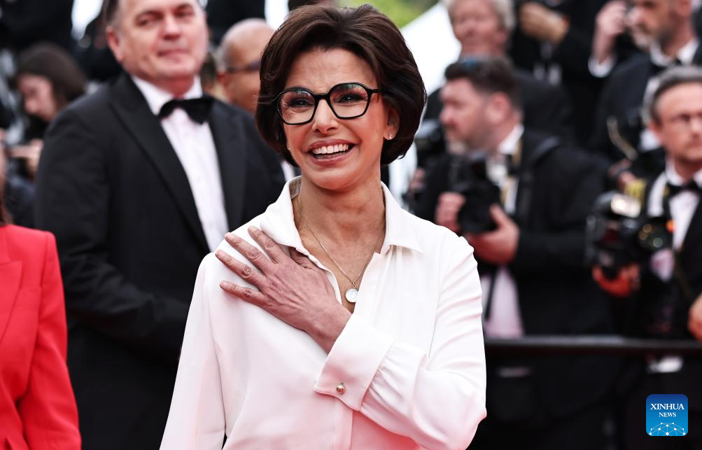 La ministra francesa de Cultura, Rachida Dati, llega para la proyección de la película «Nouvelle Vague» (Nueva Ola) en la 78 edición del Festival de Cine de Cannes, sur de Francia, el 17 de mayo de 2025. (Xinhua/Gao Jing.)