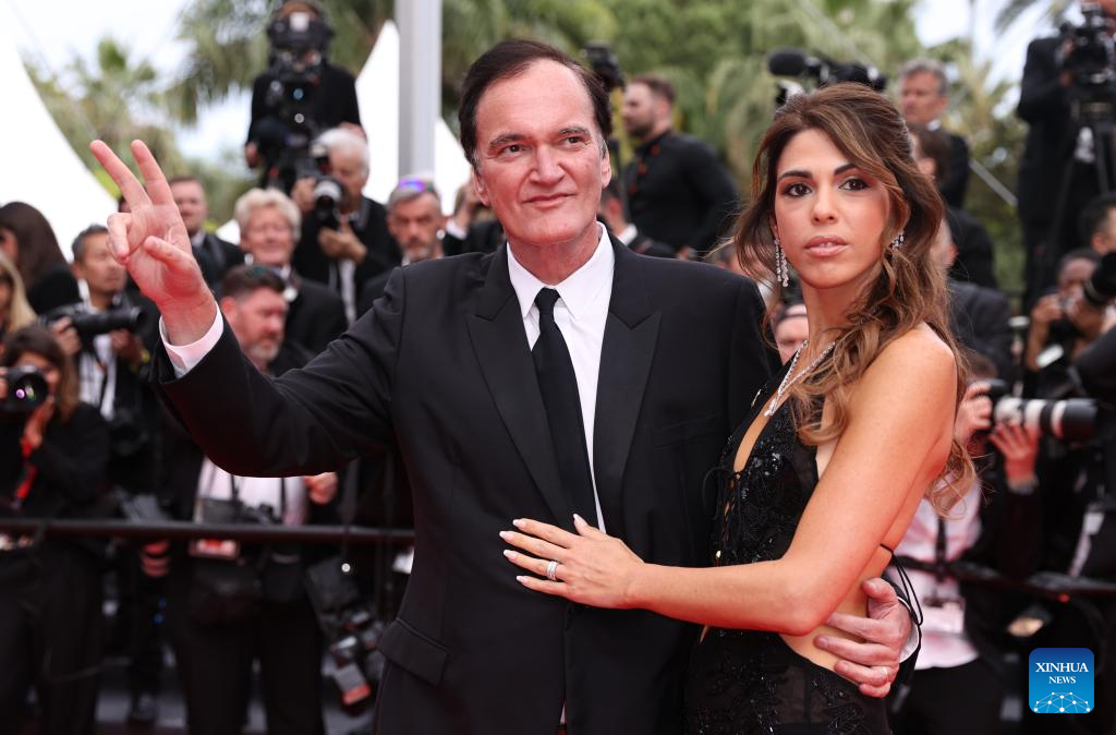 El director de cine estadounidense Quentin Tarantino y su esposa Daniella Pick llegan a la proyección de la película «Nouvelle Vague» (Nueva Ola) en la 78 edición del Festival de Cine de Cannes, sur de Francia, el 17 de mayo de 2025. (Xinhua/Gao Jing.)