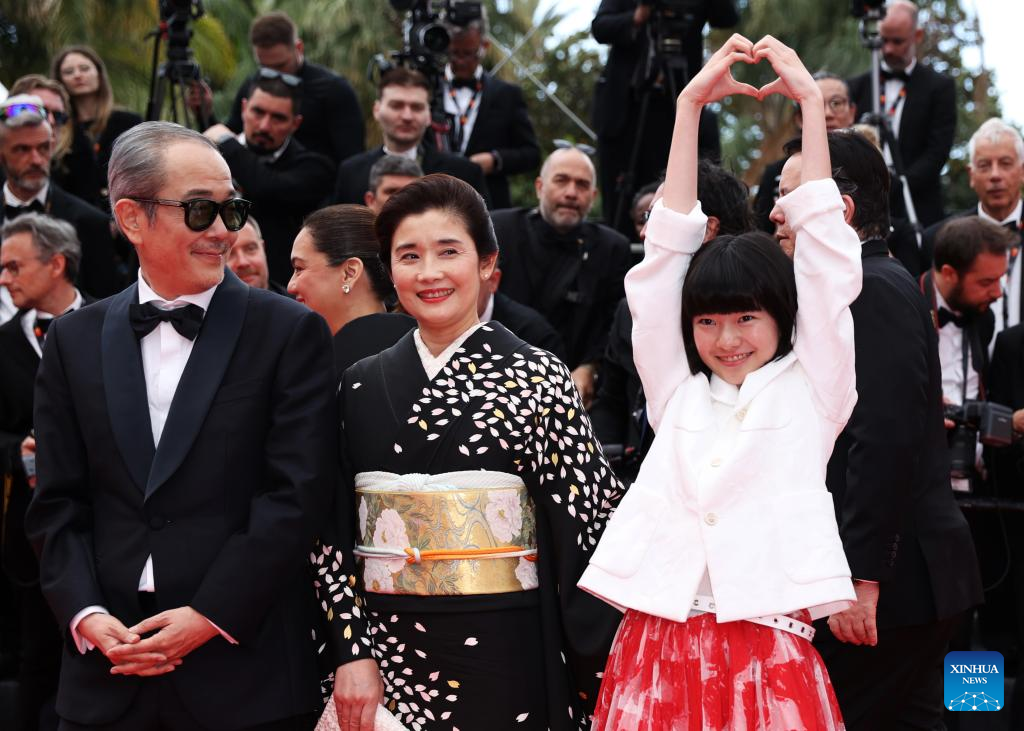 Miembros del reparto de la película Renoir son fotografiados tras el estreno de la película durante la 78 edición del Festival de Cine de Cannes, sur de Francia, el 17 de mayo de 2025. (Xinhua/Gao Jing.)