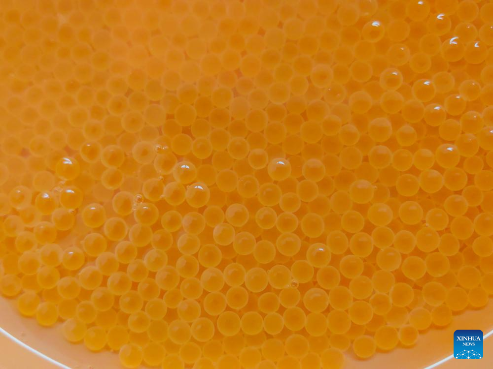 Imagen del 2 de marzo de 2025 de huevos fertilizados de taimen de Sichuan de segunda generación en una estación de proliferación y liberación de peces operada por una empresa dependiente de PowerChina Hydropower Development Group Co., Ltd., en la ciudad de Barkam, en la prefectura autónoma tibetana y qiang de Aba, en la provincia de Sichuan, en el suroeste de China. China ha tenido éxito en la cría artificial a gran escala del taimen de Sichuan, una especie de pez en peligro de extinción bajo protección de primera clase de la nación, dijo el lunes el Instituto de Investigación Pesquera del Río Heilongjiang de la Academia China de Ciencias Pesqueras. (Xinhua)