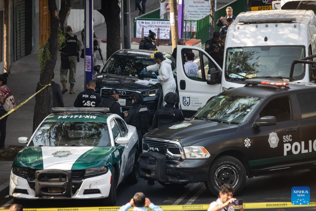 Personal de investigación forense y servicios periciales, y elementos de seguridad, trabajan luego de un ataque contra el vehículo en el que viajaba Ximena Guzmán, secretaria particular de la jefa de Gobierno de la Ciudad de México, Clara Brugada, en la Ciudad de México, capital de México, el 20 de mayo de 2025. En un ataque directo fueron asesinados la mañana del martes dos colaboradores cercanos de la jefa de Gobierno de la Ciudad de México, Clara Brugada: su secretaria particular, Ximena Guzmán, y su asesor, José Muñoz. (Xinhua/Str)