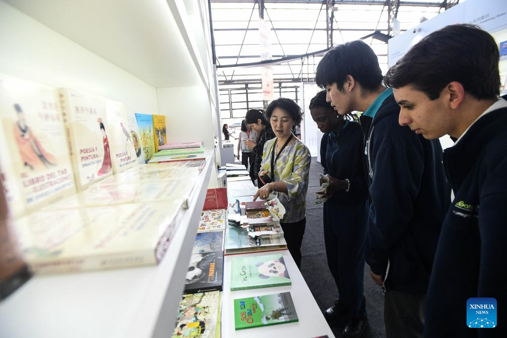 Imagen del 8 de noviembre de 2024 de visitantes explorando el pabellón de China durante la 43ª Feria Internacional del Libro de Santiago, en Santiago, Chile. China aplicará una política de exención de visado a los ciudadanos de Brasil, Argentina, Chile, Perú y Uruguay, a modo de prueba, desde el 1 de junio de 2025 hasta el 31 de mayo de 2026, anunció el jueves pasado el Ministerio de Relaciones Exteriores chino. (Xinhua/Jorge Villegas)