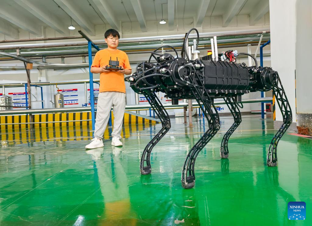 Imagen del 8 de mayo de 2025 de un técnico ajustando un robot cuadrúpedo a prueba de explosiones en Sevnce Robotics, en la municipalidad de Chongqing, en el suroeste de China. En los últimos años, Chongqing ha implementado múltiples medidas para impulsar el desarrollo de la industria robótica. Ahora ha conformado toda una cadena industrial robótica que abarca Investigación y Desarrollo, fabricación completa de máquinas, pruebas, integración de sistemas, adaptación de piezas, capacitación de talentos y servicios de aplicación. En 2024, la producción de robots de Chongqing superó los 60.000 equipos, con un valor de producción superior a los 37 mil millones de yuanes (aproximadamente 5.1 mil millones de dólares estadounidenses). (Xinhua/Wang Quanchao)