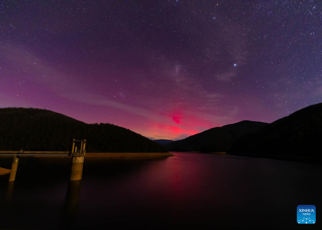Imagen del 1 de junio de 2025 de la aurora vista a las afueras de Canberra, Australia. (Xinhua/Chu Chen)