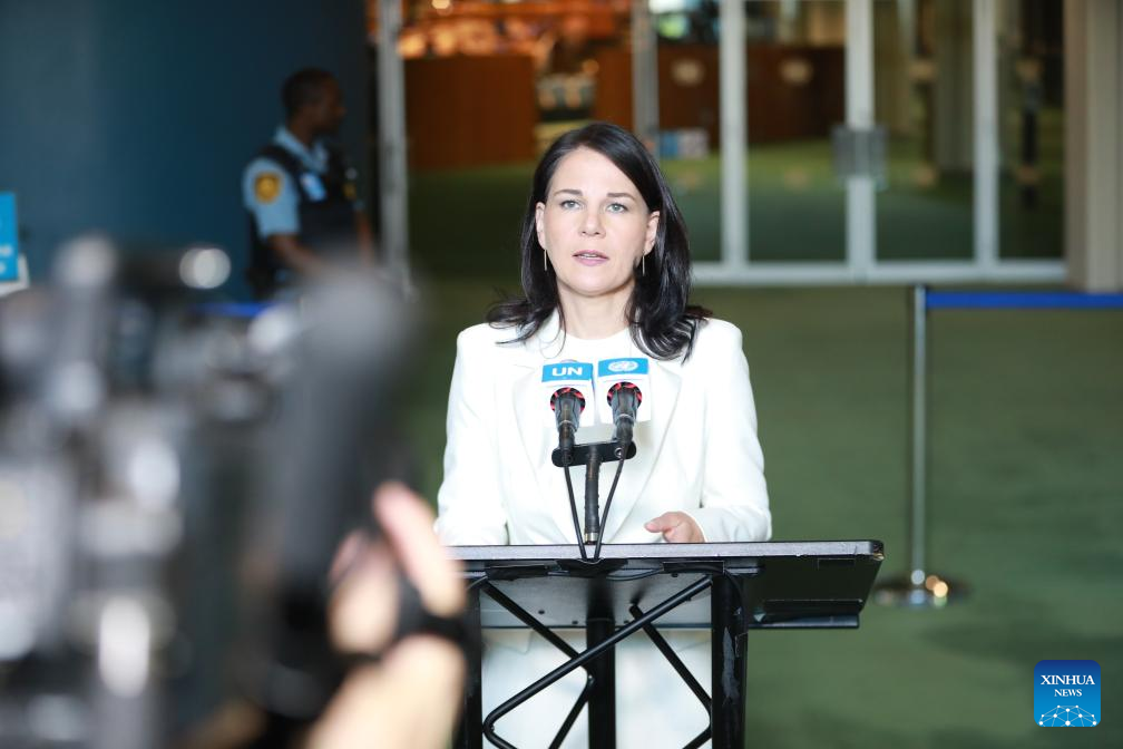 Annalena Baerbock, habla con la prensa después de ser elegida como presidenta de la próxima 80ª sesión de la Asamblea General de la Organización de las Naciones Unidas (ONU), en la sede de la ONU, en Nueva York, el 2 de junio de 2025. La exministra de Relaciones Exteriores de Alemania, Annalena Baerbock, fue elegida el lunes como presidenta de la próxima 80ª sesión de la Asamblea General de la ONU. (Xinhua/Xie E)