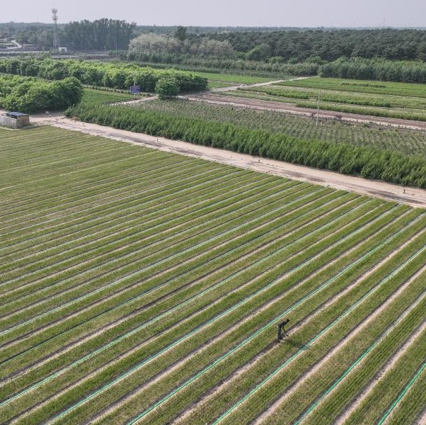 Vista aérea tomada con un dron el 30 de mayo de 2025 de un proyecto de plantación de azufaifo silvestre, en el municipio de Wufeng del distrito de Zhangwu, en Fuxin, en la provincia de Liaoning, en el noreste de China. Localizado en el extremo sur del arenal de Horqin, el distrito de Zhangwu solía estar plagado de tormentas de arena y polvo. Desde hace más de 70 años, sus habitantes no han cesado en su empeño de transformar el entorno ecológico de esta zona para ganar la dura batalla contra la desertificación. (Xinhua/Pan Yulong)
