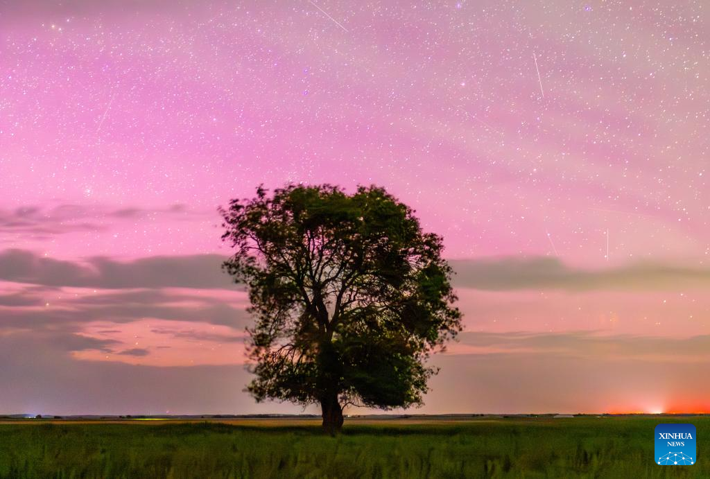 Esta foto tomada el 2 de junio de 2025 muestra una vista de la aurora en el distrito de Huachuan de la ciudad de Jiamusi, provincia nororiental china de Heilongjiang. (Fotografía de Chen Zhiguo/Xinhua.)