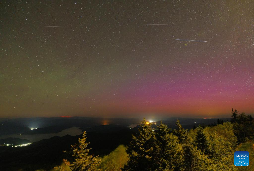 Esta foto tomada el 2 de junio de 2025 muestra una vista de la aurora en la localidad de Hailin, ciudad de Mudanjiang, provincia nororiental china de Heilongjiang. (Fotografía de Wang Baoxun/Xinhua.)