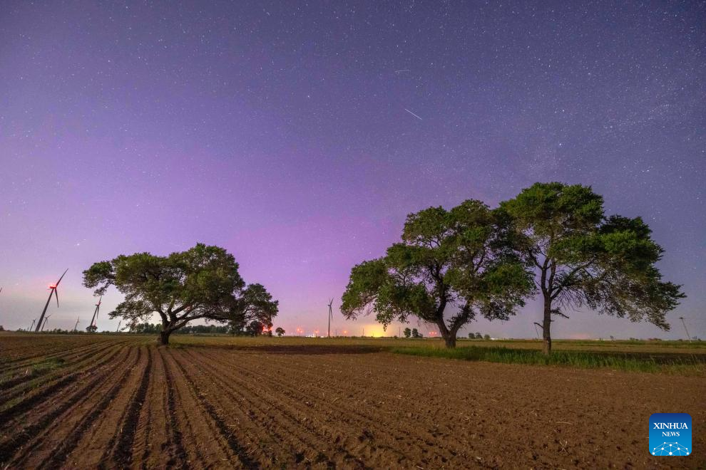 Esta foto tomada el 1 de junio de 2025 muestra una vista de la aurora en la ciudad de Qiqihar, provincia nororiental china de Heilongjiang. (Fotografía de Wang Yonggang/Xinhua.)