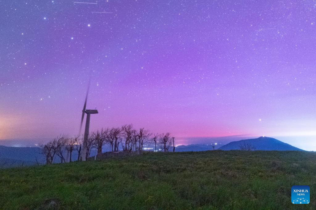 Esta foto tomada el 2 de junio de 2025 muestra una vista de la aurora en la ciudad de Shangzhi, provincia nororiental china de Heilongjiang. (Fotografía de Liu Dapeng/Xinhua.)