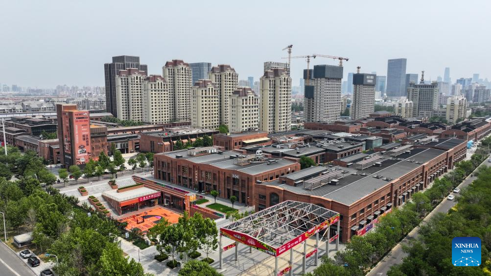 Una fotografía aérea tomada por un dron el 30 de mayo de 2025 muestra un proyecto de renovación urbana en la zona de la Fábrica de Tractores de Tianjin, en la ciudad septentrional china de Tianjin. (Xinhua/Sun Fanyue.)
