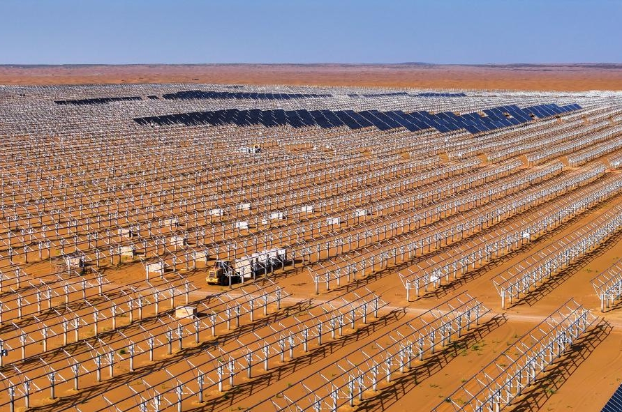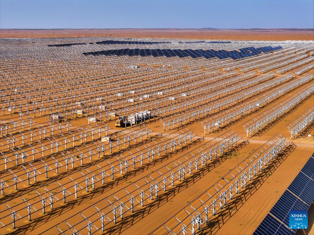 Proyectos fotovoltaicos transforman terreno arenoso en "mares azules" de energía verde en Mongolia Interior