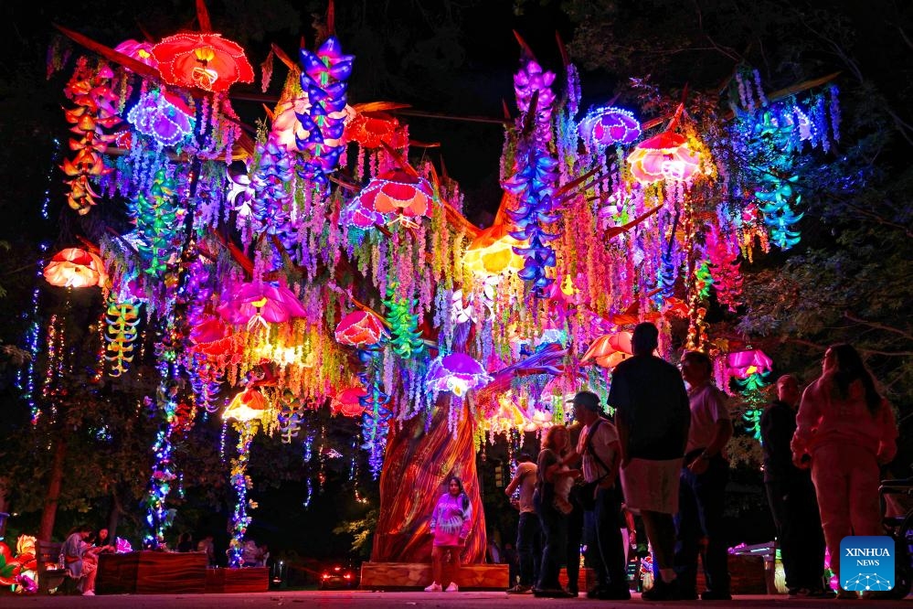 Imagen de archivo sin fechar de personas visitando una instalación de linternas hechas en Zigong, en Boston, Estados Unidos. Zigong, una ciudad en la provincia de Sichuan famosa por su artesanía centenaria de fabricación de linternas y sus ricos depósitos de fósiles de dinosaurios, ostenta los títulos de "Ciudad natal de los dinosaurios" y "Ciudad de las linternas". (Xinhua)