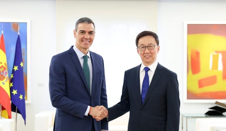 Han expresó la esperanza de que España desempeñe un papel activo para impulsar el desarrollo sano y constante de las relaciones entre China y Europa, aprovechando como una oportunidad el 50° aniversario del establecimiento de relaciones diplomáticas entre China y la Unión Europea (UE).