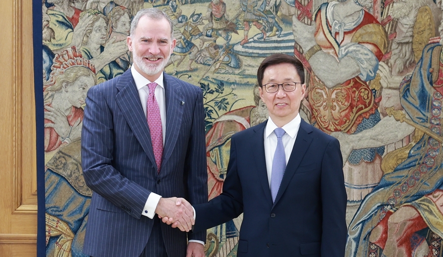 Después de transmitir al rey los saludos del presidente chino Xi Jinping, Han dijo que China aprecia el apoyo de tanto tiempo de la familia real española para el desarrollo de las relaciones China-España.