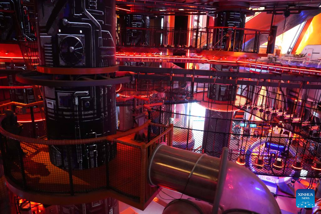 Esta foto tomada el 20 de junio de 2025 muestra una vista interior del parque de ciencia ficción SoReal, transformado a partir del alto horno número 1 del parque Shougang, en el distrito de Shijingshan de Beijing, capital de China. (Xinhua/Zheng Huansong.)